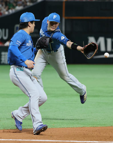 4点リードの6回無死、ソフトバンク栗原の放った弱い打球が、投手と一塁手の間に転がった。一塁手清宮幸太郎内野手(26)が捕球し、一塁ベースカバーに入った北山亘基投手(26)へグラブトスを決めた。とっさの判断で息の合ったプレーを見せた同学年コンビに、Xでは「呼吸ピッタリ」「グラブトスうますぎる」「投内連係素晴らしい」など絶賛の声が多く上がった。