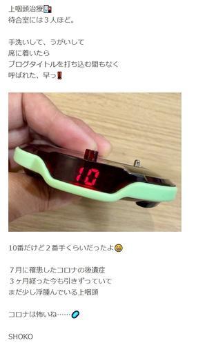 沢田は「上咽頭治療 待合室には3人ほど」とつづり「7月に罹患したコロナの後遺症 3ヶ月経った今も引きずっていてまだ少し浮腫んでいる上咽頭 コロナは怖いね……」と訴えた。