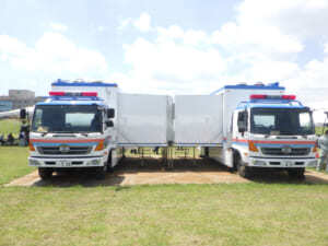 中でも注目を集めそうなのが、国土交通省が展示する「特別災害対策本部車」。これはテレビドラマ「ブルーモーメント」で使用された車両で、緊急時に現地の司令塔として活躍する特別装備を備えています。