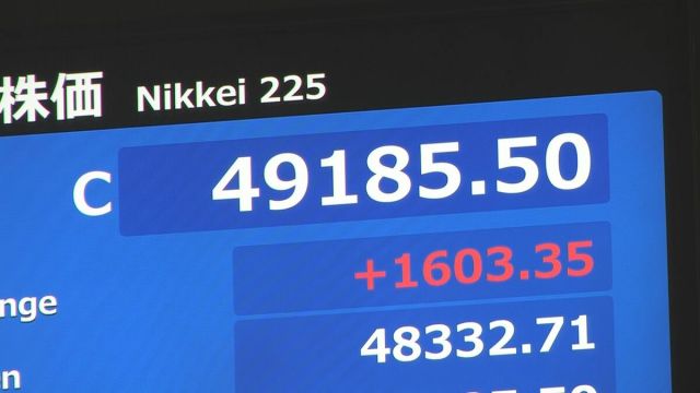 きょうの東京株式市場で日経平均株価は先週末より1603円高い4万9185円で取引を終えました。終値で4万9000円に乗せるのは史上初めてで、過去最高値を更新しています。