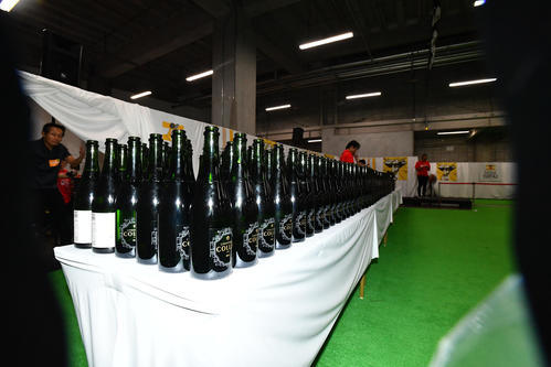 祝勝会会場に並べられたシャンパンやコーラなど(撮影・岩下翔太)