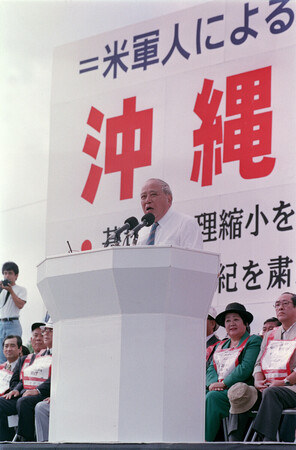事件は95年9月4日、本島北部で発生。米海兵隊員3人が女子小学生を拉致し、性的暴行を加えた。日米地位協定を理由に米側が身柄引き渡しを拒否したことから県民の怒りは高まり、総決起大会には大田昌秀知事(当時)も参加した。反基地感情の激化を懸念した日米両政府は大会直後の同年10月25日、米側の「好意的考慮」で起訴前の身柄引き渡しを可能とする協定の運用改善で一致し、翌年には普天間飛行場の返還でも合意した。