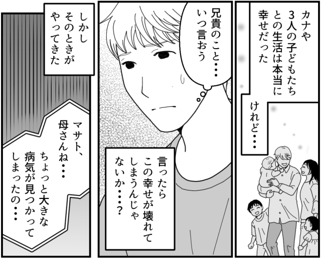 俺や両親は自分たちの保身のために兄貴の存在を隠しつづけてきた。でももうこれ以上カナの信用を失いたくない。俺はその一心で、二度とカナを裏切らないと心に誓った。