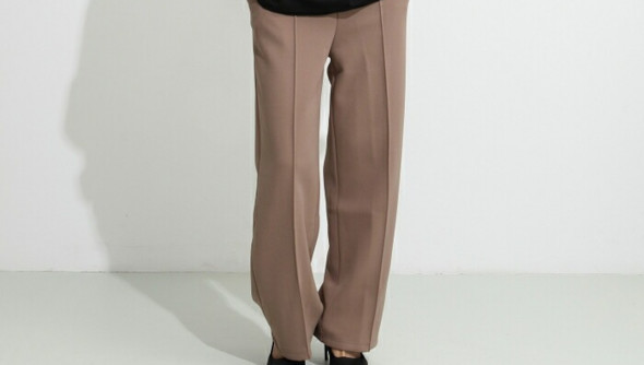 センターにピンタックを入れることで脚のラインをすっきりと見せ、スタイルアップ効果も抜群。ワイドなシルエットでどんなトップスとも合わせやすく、オフィスにも日常使いにもマッチします。