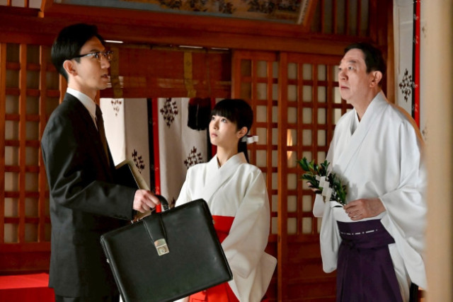 その頃、八分神社の社務所には神社本庁の清原(坂東新悟)が来ていた。風紀が乱れ、我慢の限界に達している巫女の樹里は「一日も早く出て行きたいんです」と清原に懇願。出て行けば八分神社は廃社になるという清原の言葉に神主の論平(坂東彌十郎)は肩を落とす。