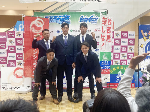広島から育成2位指名を受けた岸本大希内野手(23=桐蔭横浜大)は「びっくりしました。体が小さい(168センチの)子どもたちに夢や希望を与える選手になりたい」と話した。またロッテ育成2位の高橋快秀投手(19=多度津)は「テンポで打者を翻弄(ほんろう)したい。真っすぐとスライダーのキレで支配下入りへアピールしたい」と意気込んだ。