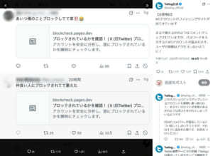 問題となった投稿は、Xのタイムライン上で「誰にブロックされているかを確認できる」と紹介され、外部サイトへの誘導が行われています。