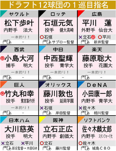 投手も野手も補強ポイントだったが、それ以上に野手を補強すると臨んだ。チームがレベルアップして切磋琢磨(せっさたくま)してレベルアップし、チーム力を上げることが一番の狙い。今年は大学生がリストの中でいい選手が多かったと思う。これまで高校生を2、3人は指名してきたが(今回は)戦力の補強というのが一番のメインだった。非常にいいドラフトだった。