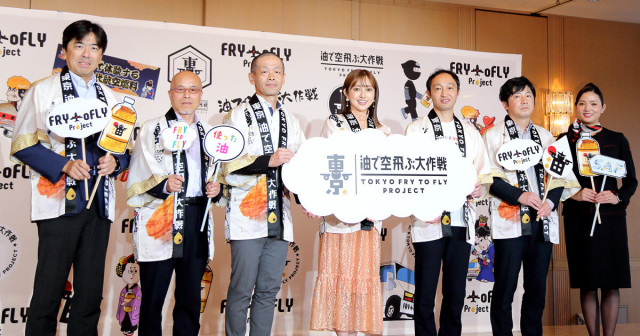 今回の「Tokyo Fry to Fly Project」報告会には、ゲストとして2児の母でもあるタレントの菊池亜美さんが参加。まずは座学で「Tokyo Fry to Fly Project 油で空飛ぶ大作戦」への理解を深めていった。