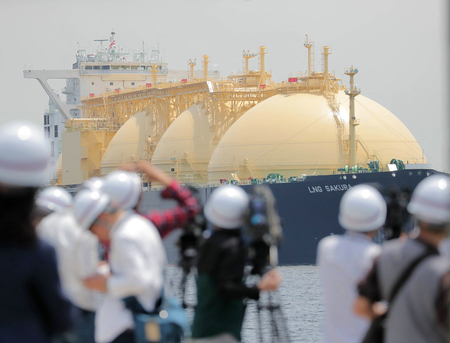 東京ガスの基地に到着する米国産LNG(液化天然ガス)を積んだタンカー=2018年5月、横浜市 東京ガスは24日、トランプ米大統領が開発に意欲を示すアラスカ州での液化天然ガス(LNG)開発計画について、「関心表明書」を締結したと発表した。計画を主導する米グレンファーン子会社との間で結び、開発動向の情報を収集しながら、年100万トンのLNGを2030年ごろから調達することを検討する。