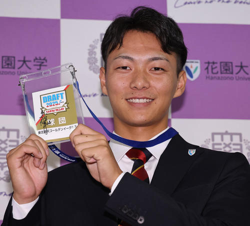 楽天のドラフト1位花園大の藤原聡大(そうた)投手(21)が24日、京都市内の同大学で三木肇監督(48)らの指名あいさつを受けた。