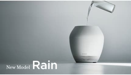 「Rain」は、花器や壺に着想を得て空間に自然となじむようデザインされた気化式加湿器。2013年の発売以来、直感的な使いやすさと美しいデザインから好評を得てきた。