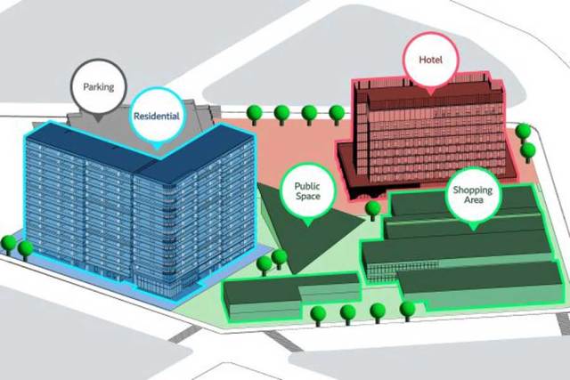 JR帯広駅南口と旧長崎屋帯広店跡地の敷地面積25,000平方メートルを再開発し、高層分譲マンションやホテル、商業施設3棟を建設する。