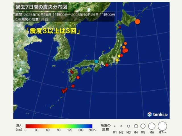 ¤³¤³1½µ´Ö(10·î18Æü11»þ00ʬ¡Á25Æü11»þ00ʬ)¤Ç¤Ï¡¢¿ÌÅÙ1°Ê¾å¤ÎÃϿ̤ò31²ó´Ñ¬¤·¤Þ¤·¤¿¡£
