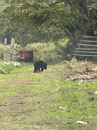 山林に出没したクマ=12日、岩手県葛巻町(同町提供)