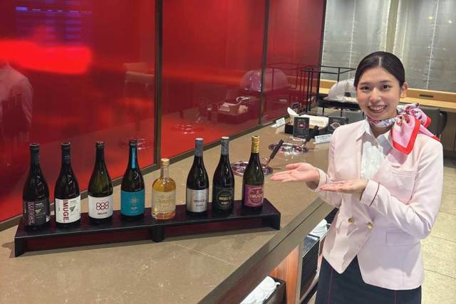 JALグループは、那覇空港国内線の「ダイヤモンド・プレミアラウンジ」、「サクララウンジ」で、沖縄の伝統酒「IMUGE.(イムゲー)」を11月1日から期間限定で提供する。