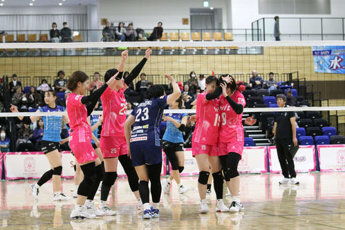 歌手のHIPPYが駆けつけて代表曲「君に捧げる応援歌」を披露するなど、開幕戦は盛り上がりを見せた。主将の山田菜那光(23)は「(攻撃では)サイドもミドルもけっこう使えた。そこはすごくよかった。修正しなきゃいけないのはディフェンス面」と26日の第2戦を見据えた。