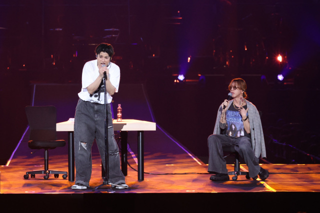 歌唱を巡ってやり取りを交わした(左から)山田裕貴、渋谷龍太(C)山田裕貴のオールナイトニッポン ドラゴンフェニックス甲子園 俳優の山田裕貴がパーソナリティーを務める、ニッポン放送『山田裕貴のオールナイトニッポン』(毎週月曜 深1:00)の番組イベント「山田裕貴のオールナイトニッポン ドラゴンフェニックス甲子園」が26日、横浜アリーナで開催された。山田はSUPER BEAVER・渋谷龍太とのトーク企画で同グループの楽曲を熱唱し、渋谷が“困惑”した。