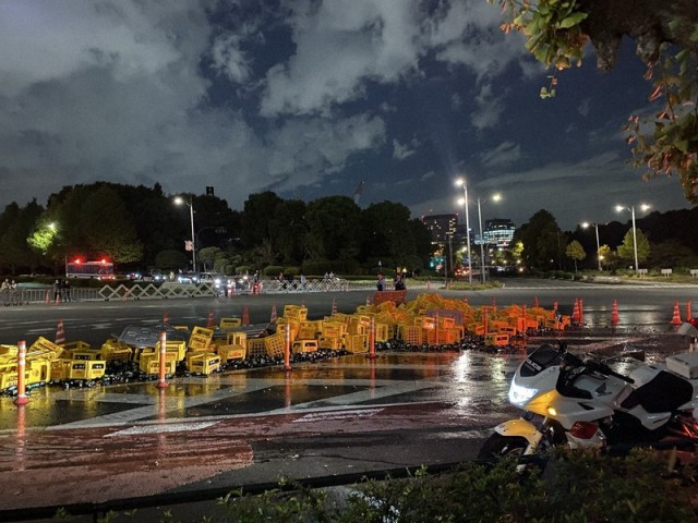 国会前の路上でビールケース散乱 トランプ氏来日で警戒のさなか