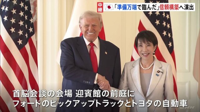 この関係構築に向けて首脳会談の舞台である迎賓館の前庭には、アメリカの自動車メーカーフォードのピックアップトラックとトヨタの自動車を並んで展示するという演出がなされました。