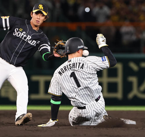 阪神対ソフトバンク 6回裏阪神無死一塁、森下は二盗を決める(撮影・上田博志)<日本シリーズ:阪神1−2ソフトバンク>◇第3戦◇28日◇甲子園