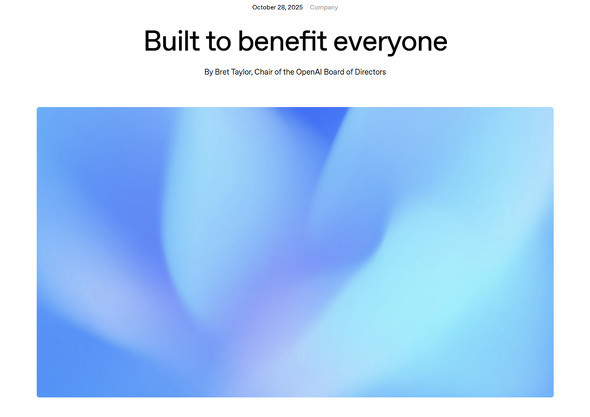 米OpenAIは10月28日(現地時間)、組織構造を従来の非営利団体と営利企業という構造から、営利企業をデラウェア州公益法人(PBC)に転換したと発表した。PBCは、公共の利益と社会貢献を目的とした営利法人で、米Anthropicや、イーロン・マスク氏が所有するhisihis米xAIも同様の構造を採用している。