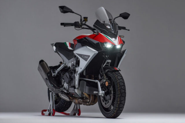 『Tesi H2 TERA』は、カワサキの過給機付きスポーツツアラー『Ninja H2 SX』と同じパワートレインを持つアドベンチャーモデルだ。フロントの足回りが特徴で、ステアリング機能とサスペンション機能を完全に分離した『Tesiセンターハブステアリングシステム』が採用されている。これにより、よりダイレクトな操作感を実現した。
