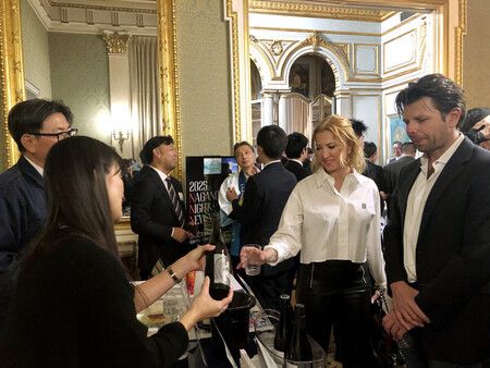 米沢酒造(長野県中川村)の純米大吟醸を試飲したエリン・ジンバーグさんは「辛口過ぎず、バランスの良い味わいで気に入った」と話した。