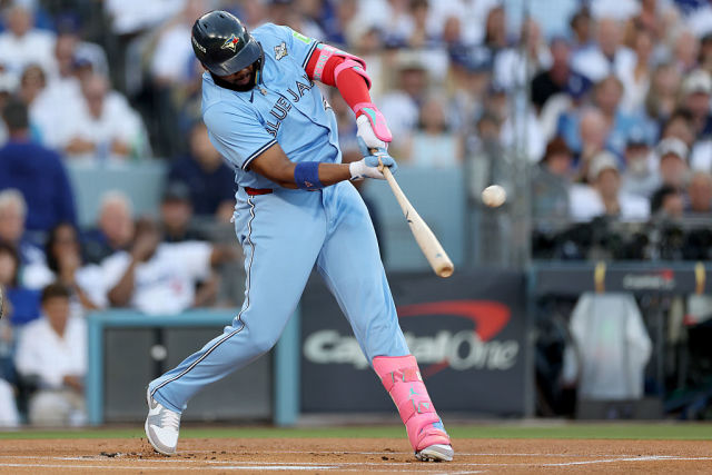 2試合連続本塁打を放ったブルージェイズのウラジーミル・ゲレロJr.(写真=GettyImages)◆ ワールドシリーズ史上初のプレーボール2者連発