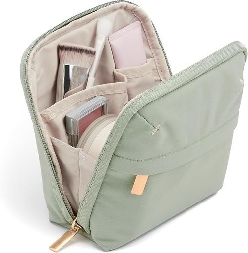 スマートなフォルムで狭いスペースでも使いやすいほか、複数のポケットや仕切りを備えており、小物を細かく整理できるのもうれしいポイント。さらに、表にはっ水加工を施しており、水ぬれに強いのも魅力です。