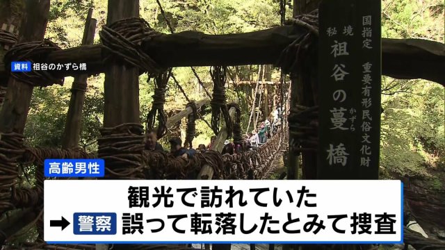 きのう、徳島県三好市の観光名所「祖谷のかずら橋」から高齢男性が転落し、死亡しました。