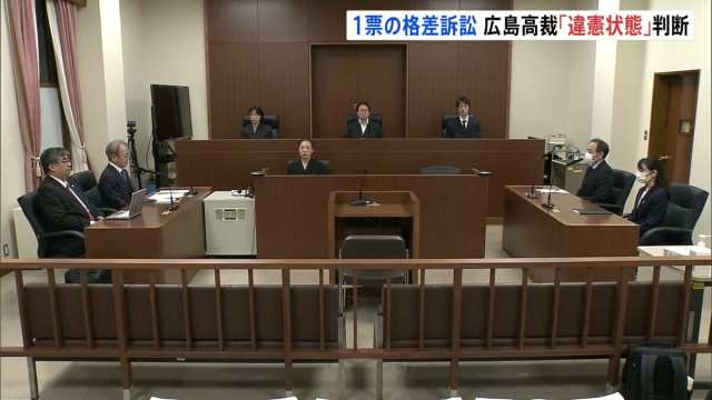 広島高裁の末永雅之裁判長は、格差について「違憲の問題が生じる程度の不平等状態にあった」と指摘しました。一方で、「選挙当時に定数配分の規定が憲法に反するに至っていたとはいえない」とし、選挙無効の訴えについては退けました。