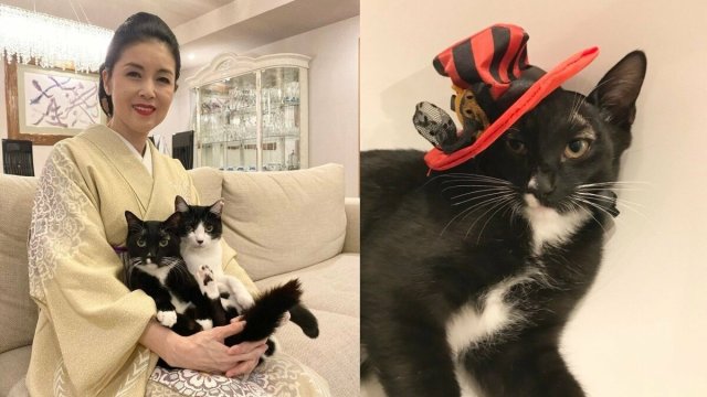 【写真を見る】【 ねこ 】藤あや子さんの愛猫・マル「ハロウィンといえばボク」 黒が似合う帽子でコスプレ フォロワー反応「ジュリーみたい」