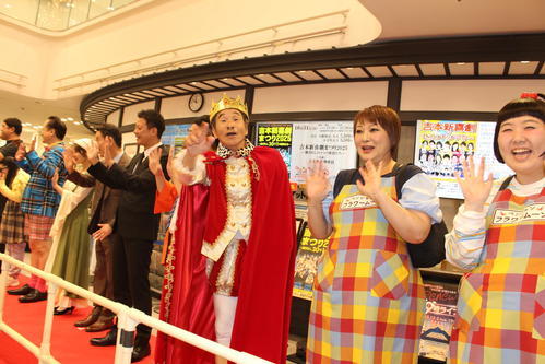 寛平GMが某国の国王、花子が姫という設定で展開される爆笑コメディー。途中、寛平が段取りを無視したり、酒井がセリフを忘れるハプニングもあったが、そこはアドリブに強い新喜劇。ミスを笑いにつなげるパワーを見せつけた。最後の見せ場は、25人でけん玉に挑戦。ラストの花子がなんとか成功させて締めくくった。終演後は出演者一同が観客を見送って、最後までファンを喜ばせた。