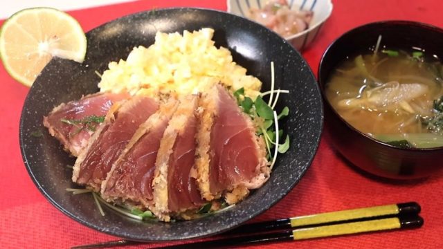 素材本来の良さを楽しみつつ、がっつり感も味わえる料理 レアカツ! 今回はブリで作ったレアカツを贅沢に丼でいただきましょう!
