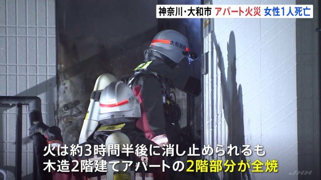 きょう未明、神奈川県大和市でアパートの2階が燃える火事があり、火元の部屋から女性1人の遺体が見つかりました。