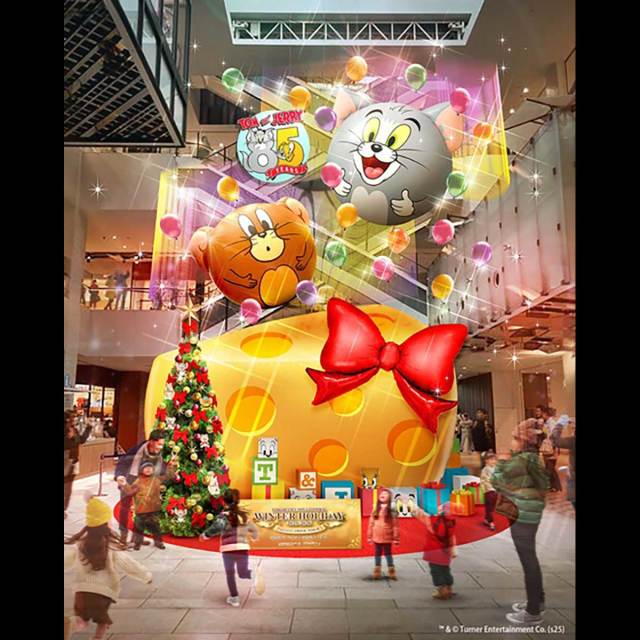 3つ目は、スカイビルの10階中央広場に登場する「Tom and Jerry CHRISTMAS PARTY」。大きなホールケーキ風のツリーとなっていて、トムとジェリーが仲間たちと一緒にクリスマスケーキを準備するワンシーンをイメージしたものなのだとか。