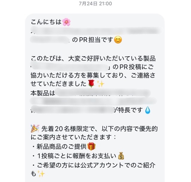 ¼Ì¿¿¡¡SNS¤ÎDM¤òÄ̤¸¤Æ´ë¶È¤ä¥Ö¥é¥ó¥É¤ò̾¾è¤ë¥¢¥«¥¦¥ó¥È¤«¤é¡Ö¾¦ÉÊPR¤Î°ÍÍê¡×¤ò¼õ¤±¤ë¡½¡½¡£¤½¤ó¤Ê¡È°Æ·ïº¾µ½¡É¤ÎÈï³²¤¬¡¢¥¤¥ó¥Õ¥ë¥¨¥ó¥µ¡¼¤Î´Ö¤Ç¿ȯ¤·¤Æ¤¤¤Þ¤¹¡£¼Âºß¤¹¤ë´ë¶È¤Î¼Ò̾¤ä¥í¥´¤ò»È¤¤¡¢¤â¤Ã¤È¤â¤é¤·¤¤·ÀÌó½ñ¤Þ¤ÇÍѰդµ¤ì¤Æ¤¤¤ë¤³¤È¤â¤¢¤ê¡¢¡Ö¤Þ¤µ¤«º¾µ½¤À¤È¤Ï»×¤ï¤Ê¤«¤Ã¤¿¡×¤ÈÈï³²¤ËÁø¤¦¥±¡¼¥¹¤¬Á꼡¤¤¤Ç¤¤¤ë¤Î¤Ç¤¹¡£