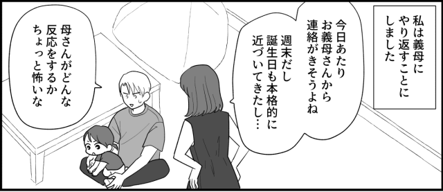 「母さんがどんな反応するか怖いな」と言うソウタ。ソウタは今までずっと我慢してきました。私がソウタの代わりに、きっちりとやってやるんだから! そう話していたところにタイミングよくスマホが鳴り、画面には「義母」の文字。私はニヤリと笑って電話に出ました。ソウタは固唾を飲んで見守っています。