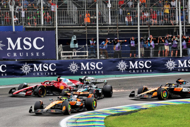 2025年F1第21戦サンパウロGP 6周目のターン1で3台が接触しシャルル・ルクレール(フェラーリ)がリタイアとなる 現地時間11月9日、2025年F1第21戦サンパウロGPの決勝レースが行われ、ランド・ノリス(マクラーレン)がポール・トゥ・ウインで今季7勝目/自身通算11勝目を飾った。