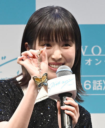 福本は好きなシーンについて「電車のシーンです。印象的なシーンが多くてお気に入り。(仁菜子が蓮からもらうチョウチョの)キーホルダーもグッズ化されているのでぜひ。キーアイテムです」と持っていたグッズを披露しながらアピールした。