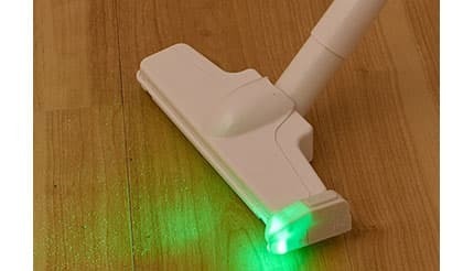 ライトは緑色になっており、暗い場所での視認性が高く、家具の狭い隙間などのゴミもしっかりと確認できる。