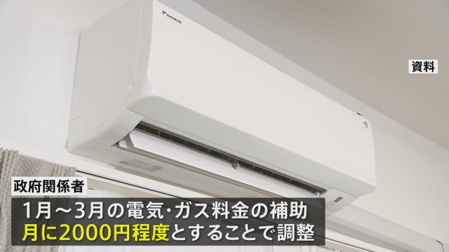 こうした中、暖房器具の使用などで負担がかさむ来年1月から3月の電気・ガス料金の補助を月に2000円程度とすることで調整していることが政府関係者への取材で分かりました。