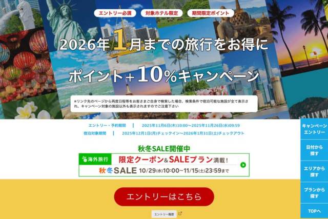 ³ÚÅ·¥°¥ë¡¼¥×¤Ï¡¢Î¹¹ÔͽÌó¥µ¥¤¥È¡Ö³ÚÅ·¥È¥é¥Ù¥ë¡×¤Ç¡Ö³¤³°Î¹¹Ô¥Ý¥¤¥ó¥È¡Ü10¡ó¥¥ã¥ó¥Ú¡¼¥ó¡×¤ò11·î6Æü¸áÁ°10»þ¤«¤é26Æü¸áÁ°9»þ59ʬ¤Þ¤Ç³«ºÅ¤·¤Æ¤¤¤ë¡£