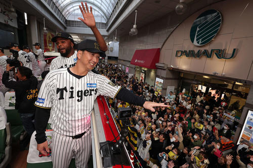 阪神が御堂筋でパレードを開催するのは03年、05年、23年に続いて4度目。なぜか85年は行っていない。