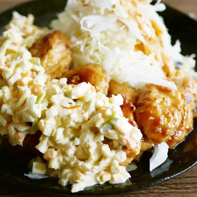 目玉焼きからタルタルソースを作るというワザにびっくりしますよね。これならば、ぐっと時間を短縮できそうです。また、鶏肉を揚げずに、ひと口サイズでソテーしていくのも時短ポイント。あっという間にチキン南蛮が完成。ぜひ試してみてください。