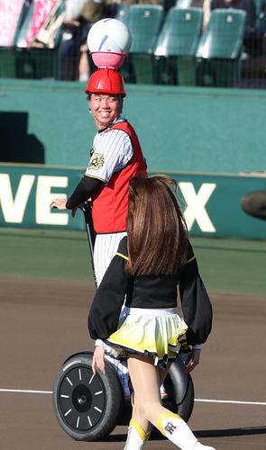 セグウェイリレーする阪神村上(撮影・上山淳一)<阪神タイガースファン感謝デー2025>◇23日◇甲子園