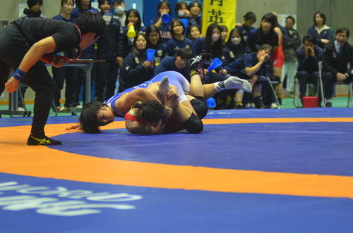ロス五輪金を目標とする清岡もえ(育英大)は優勝決定戦で弓矢紗希(日体大)に9−0と圧勝した。