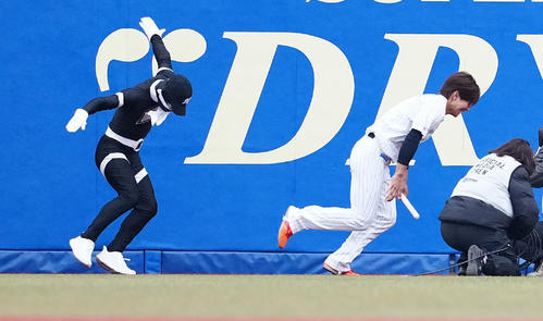 続いてDASHMAN WHITEと戦うのは宮崎竜成内野手(24)と武内涼太投手(20)コンビ。武内は「勤労感謝の日なので来ていただいてるファンのみなさんに感謝を込めて走りたい」と意気込んだが、今度は選手たちが最後まで追いつくことができず敗戦。宮崎は「武内が鬼の形相で走ってたんで力んじゃいましたね」と笑顔で振り返った。