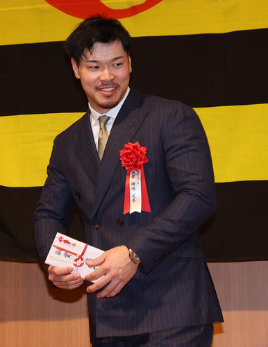 「いろいろな方にしゃべっていただきました。おめでとうと言っていただきました」と喜んだ。掛布OB会長から50本塁打、3冠王も可能とエールを送られたことには「頑張ります。そんなに甘い世界ではないですけど、打てるように。また1からですね。打率も上げていきたいです」と受け止めた。